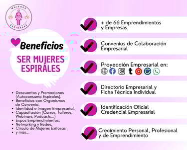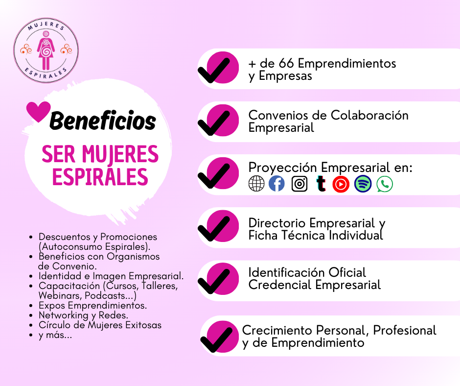 Comunidad de Mujeres Espirales nace un 28 de junio de 2023, a iniciativa de la Dra. Guadalupe Chávez Rojas, quien convoca a un grupo de mujeres con el objetivo de buscar estrategias y abrir caminos para lograr nuevas oportunidades de crecimiento personal, profesional y empresarial en beneficio común.